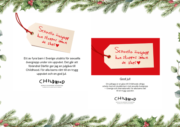 Ett av fyra barn i Sverige utsätts för sexuella övergrepp under sin uppväxt. Det går att förändra! Just du kan bidra till den förändringen. Ge en julgåva idag och hjälp oss nå vår vision om en värld där inget barn utsätts för sexuella övergrepp.